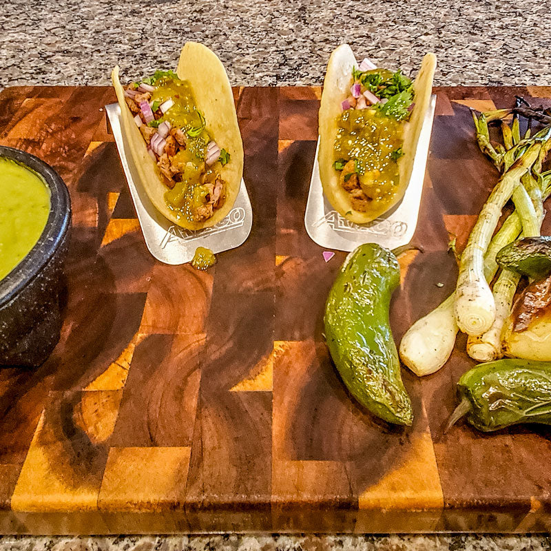 To assemble, simply put the middle of the ARTACO on the edge of a table or flat surface with enough room to bend half of the ARTACO over. Then place one hand flat (or use a book) on the half that's on the table and using your other hand flat on the ARTACO, push down until the two sides are a 90 degree angle. For smaller street tacos, you can bend a little more to the sides are closer together.